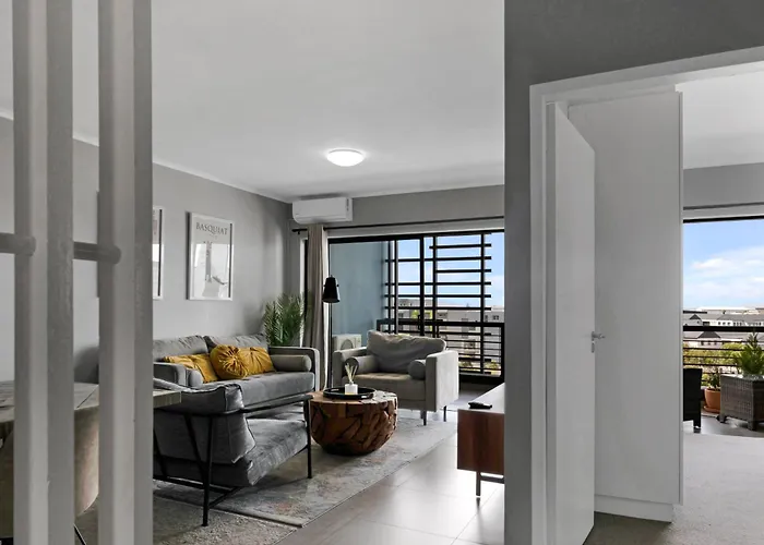 Das 89 m² große Two Bedroom Luxury Apartment, Century City - Backup Power Kapstadt bietet einen Swimmingpool und eine Terrasse. Es befindet sich im Stadtviertel Milnerton, etwa 3 Kilometer vom Milnerton Leuchtturm entfernt. Die 2-Zimmer-Apartments mit einem Ausblick auf die Berge garantiert die Sicherheit der Gäste durch 24-Stunden-Sicherheitsdienst.